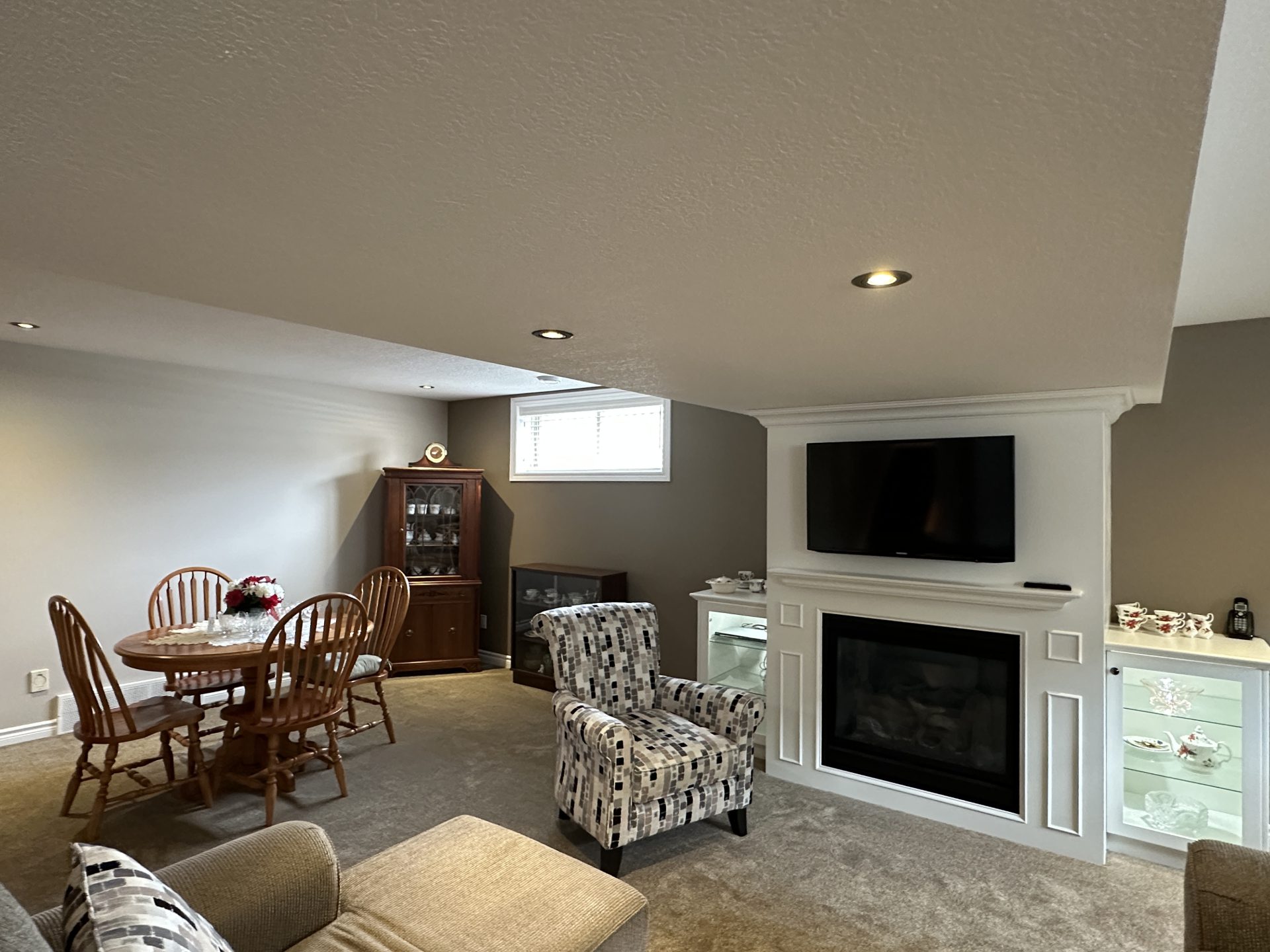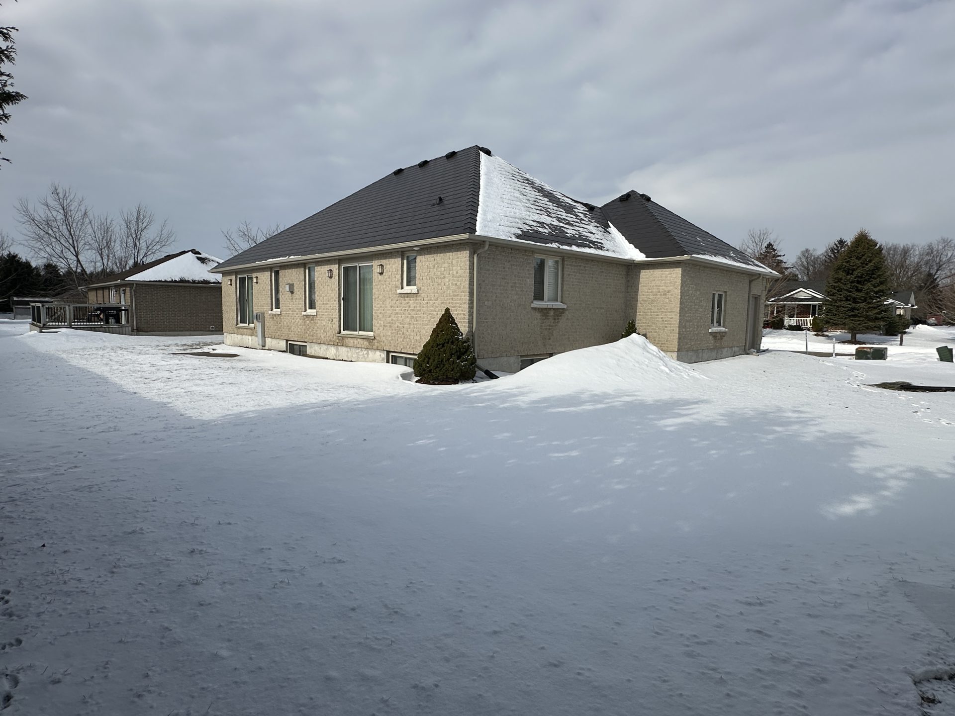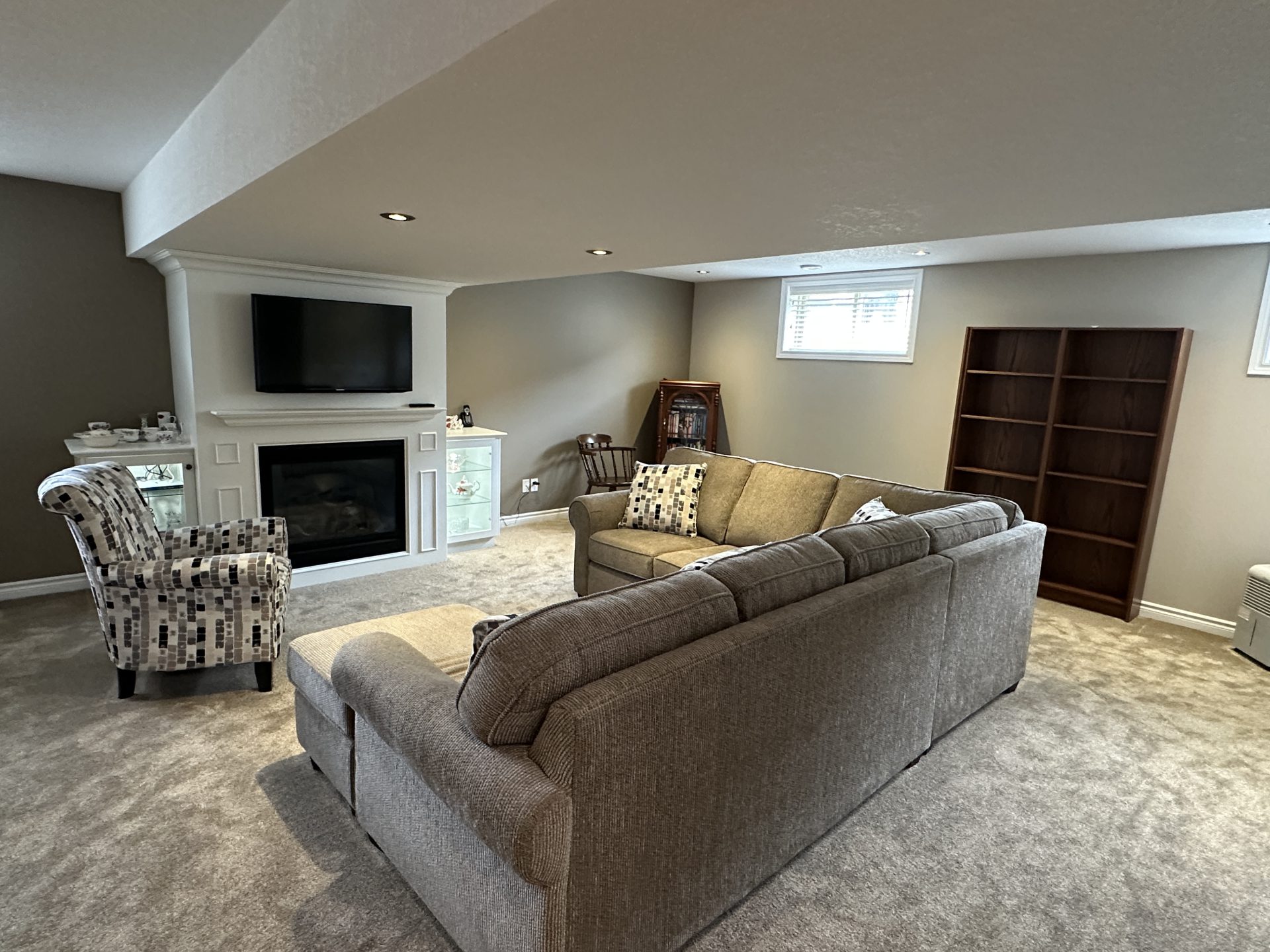 Welcome to this immaculate, all-stone and brick bungalow where pride of ownership shines through in every detail. Situated in a sought-after, family-oriented subdivision within walking distance to the local public school and amenities, this move-in-ready home offers approximately 1,500 sq. ft. of pristine main-floor living space. The exterior impresses with a durable metal roof and an inviting front porch and front patio area, leading into a spacious open foyer. Inside, the carpet-free main level features, (some) 9 ft, cathedral & coffered ceilings on the main level, hardwood, ceramic and laminate flooring, all within a bright, open-concept layout. The functional galley kitchen boasts ample cabinetry, breakfast bar island, opening to a dinette with custom built-ins and backyard access. Relax in the living room centered by a cozy gas fireplace. The primary retreat is a true standout with a spacious walk-in closet, a 4-piece ensuite with heated floor, soaker tub and stand alone shower, linen closet and private patio doors to the yard. A second bedroom, 4-piece bath, and convenient main-floor laundry complete this level. The finished lower level significantly expands your living space, featuring a massive recreation room with a second gas fireplace and built-in cabinetry. This level also hosts a spacious third bedroom with an oversized walk-in closet, a third 4-piece bathroom, and extensive storage options including a cold cellar. Car enthusiasts will appreciate the (approx.) 24×24 attached double garage with 2-man doors to either side of the home providing plenty of room for vehicles and a dedicated workstation. From the meticulous well-maintained to the prime location, this home is sure to impress. Schedule your private showing today, so you can see for yourself all that this impressive family home will afford you and your family, you can just bring the furniture and live! Home shows AAA+++