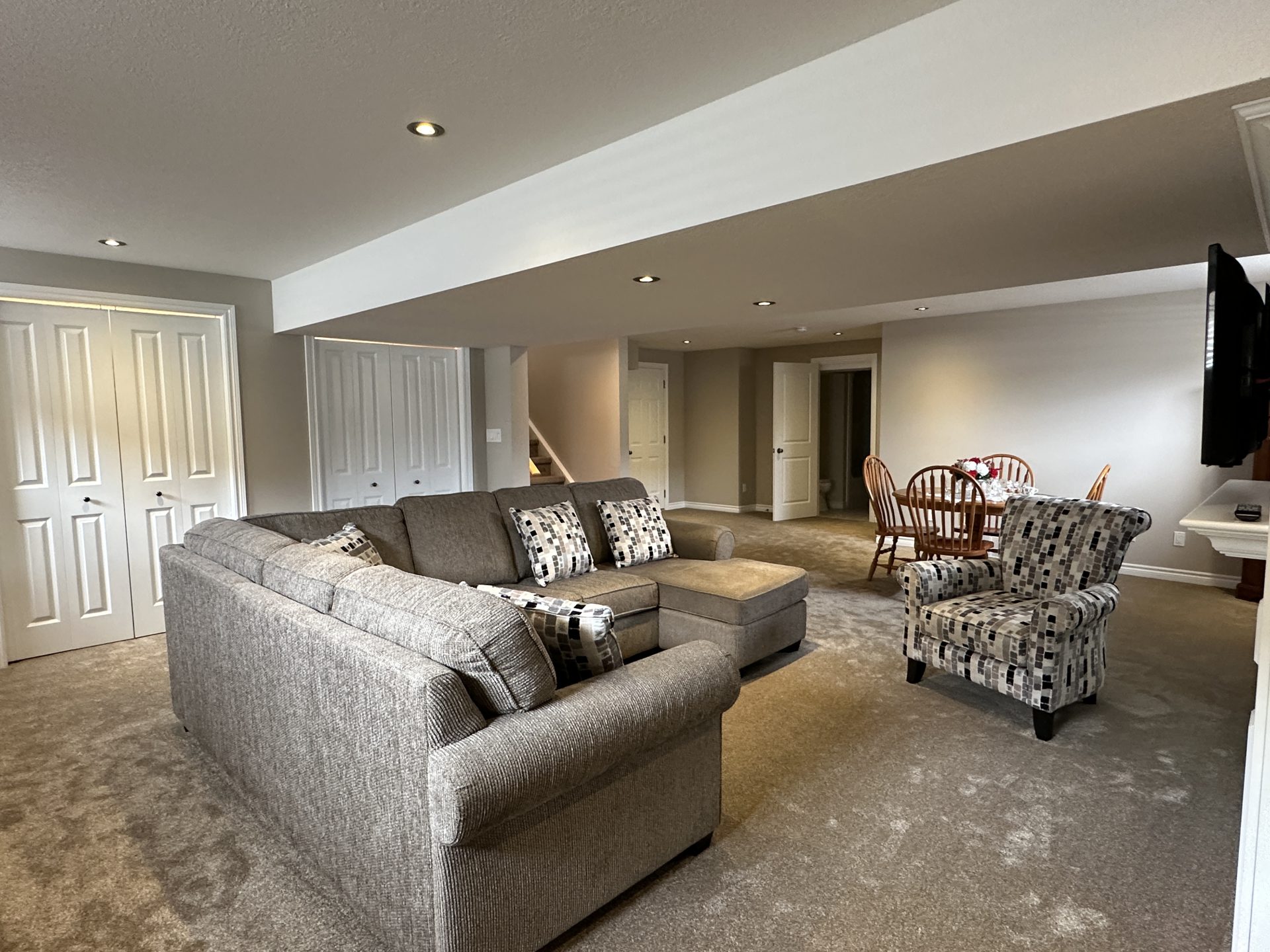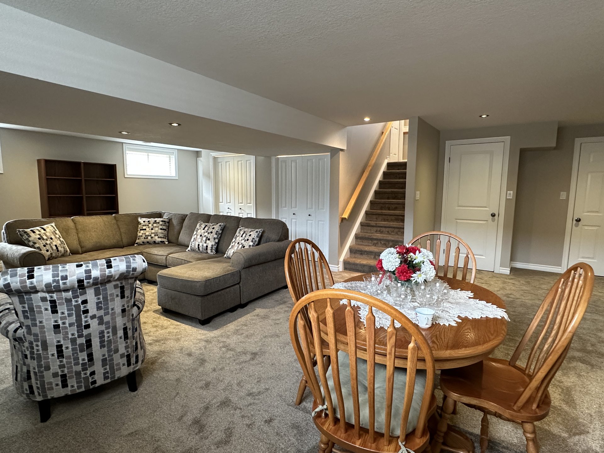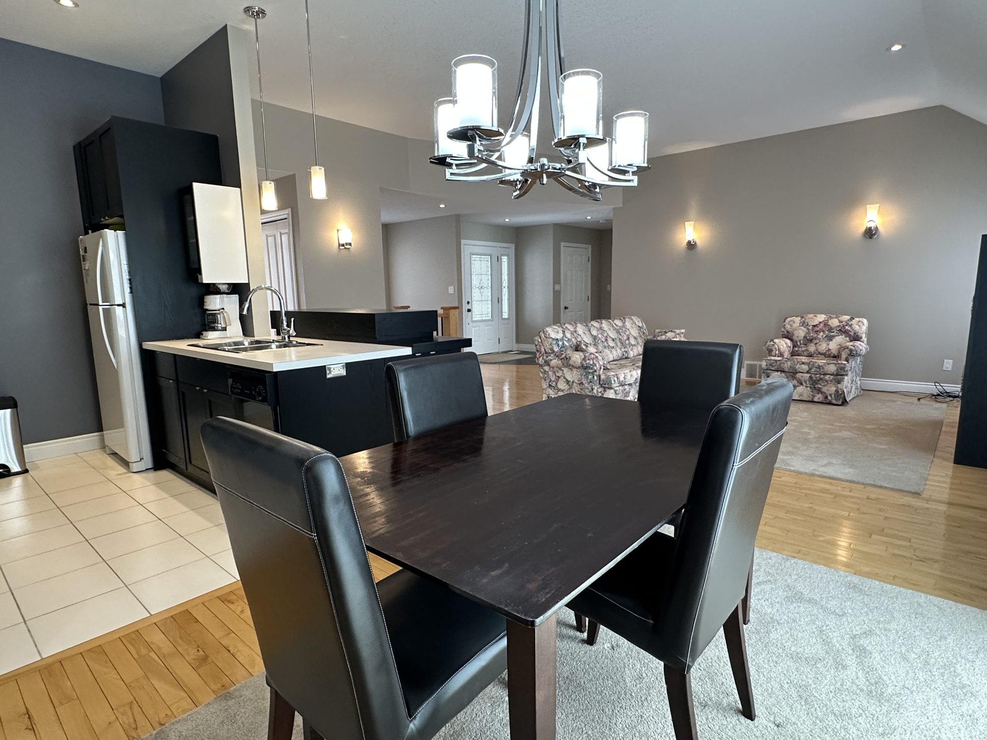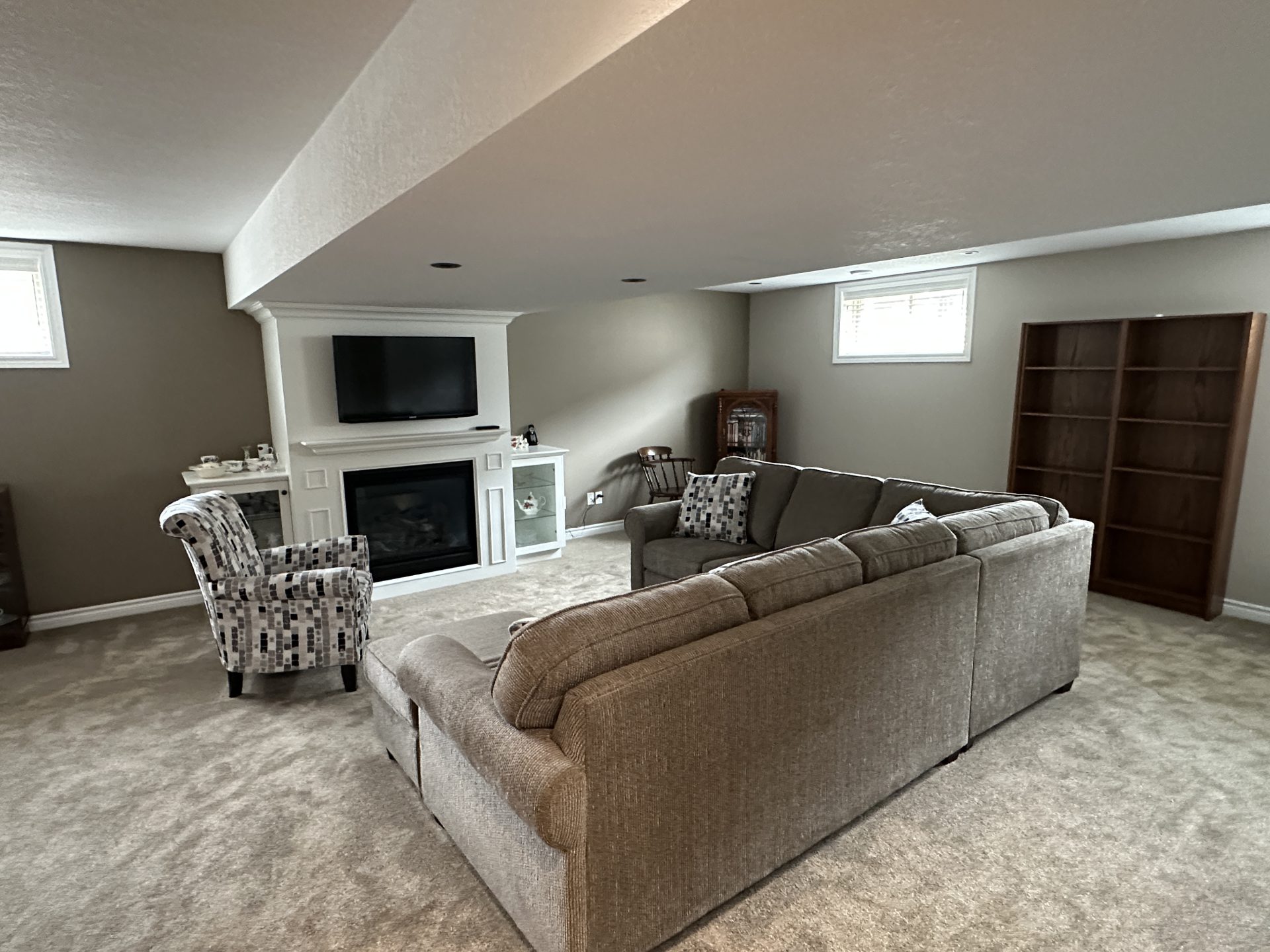Welcome to this immaculate, all-stone and brick bungalow where pride of ownership shines through in every detail. Situated in a sought-after, family-oriented subdivision within walking distance to the local public school and amenities, this move-in-ready home offers approximately 1,500 sq. ft. of pristine main-floor living space. The exterior impresses with a durable metal roof and an inviting front porch and front patio area, leading into a spacious open foyer. Inside, the carpet-free main level features, (some) 9 ft, cathedral & coffered ceilings on the main level, hardwood, ceramic and laminate flooring, all within a bright, open-concept layout. The functional galley kitchen boasts ample cabinetry, breakfast bar island, opening to a dinette with custom built-ins and backyard access. Relax in the living room centered by a cozy gas fireplace. The primary retreat is a true standout with a spacious walk-in closet, a 4-piece ensuite with heated floor, soaker tub and stand alone shower, linen closet and private patio doors to the yard. A second bedroom, 4-piece bath, and convenient main-floor laundry complete this level. The finished lower level significantly expands your living space, featuring a massive recreation room with a second gas fireplace and built-in cabinetry. This level also hosts a spacious third bedroom with an oversized walk-in closet, a third 4-piece bathroom, and extensive storage options including a cold cellar. Car enthusiasts will appreciate the (approx.) 24×24 attached double garage with 2-man doors to either side of the home providing plenty of room for vehicles and a dedicated workstation. From the meticulous well-maintained to the prime location, this home is sure to impress. Schedule your private showing today, so you can see for yourself all that this impressive family home will afford you and your family, you can just bring the furniture and live! Home shows AAA+++